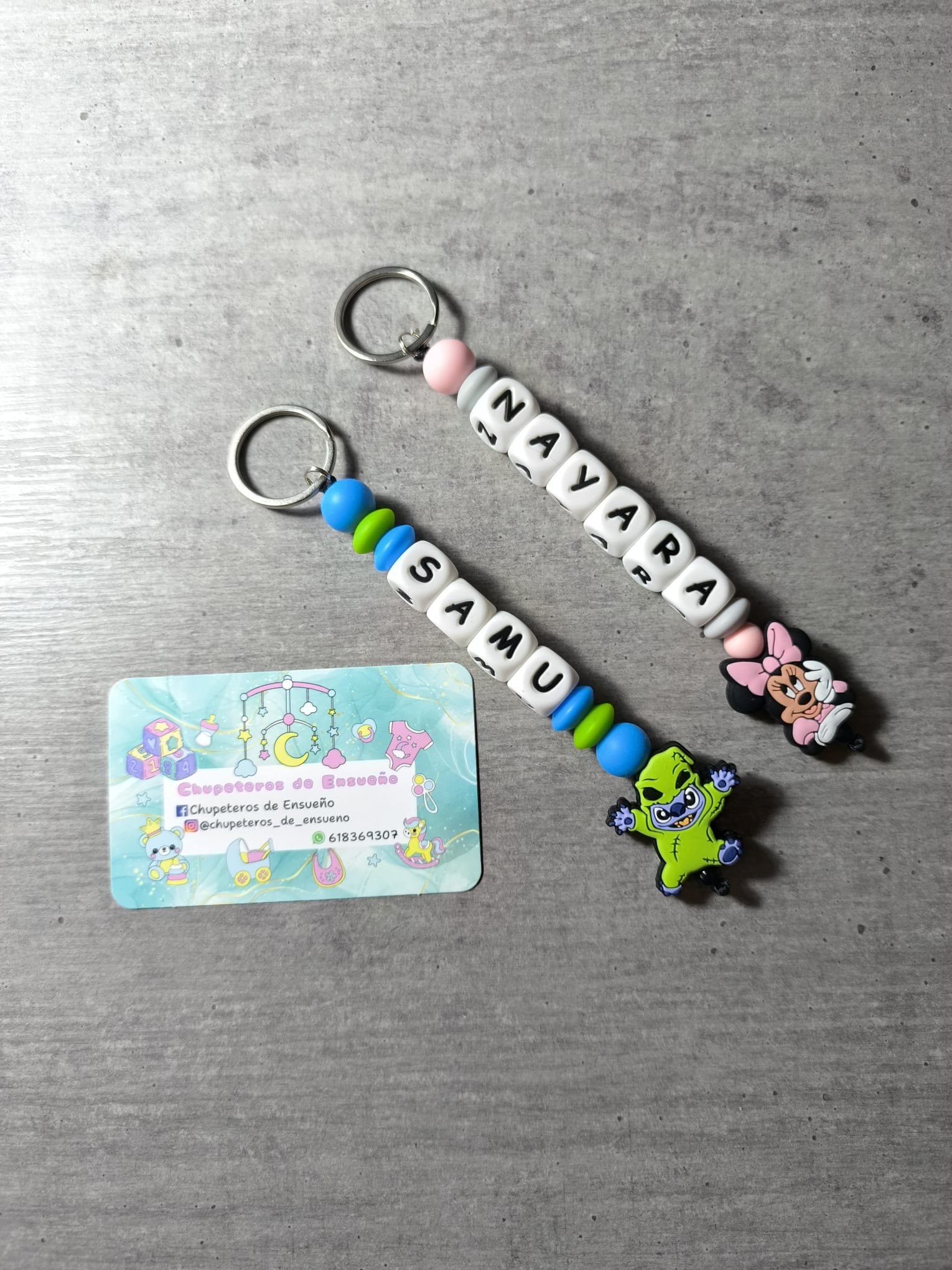 «Llaveros de silicona alimentaria con nombre y decoración Disney o No Disney. Diseño atractivo y original. Ponte en contacto conmigo y le daré las diferentes opciones disponibles.»